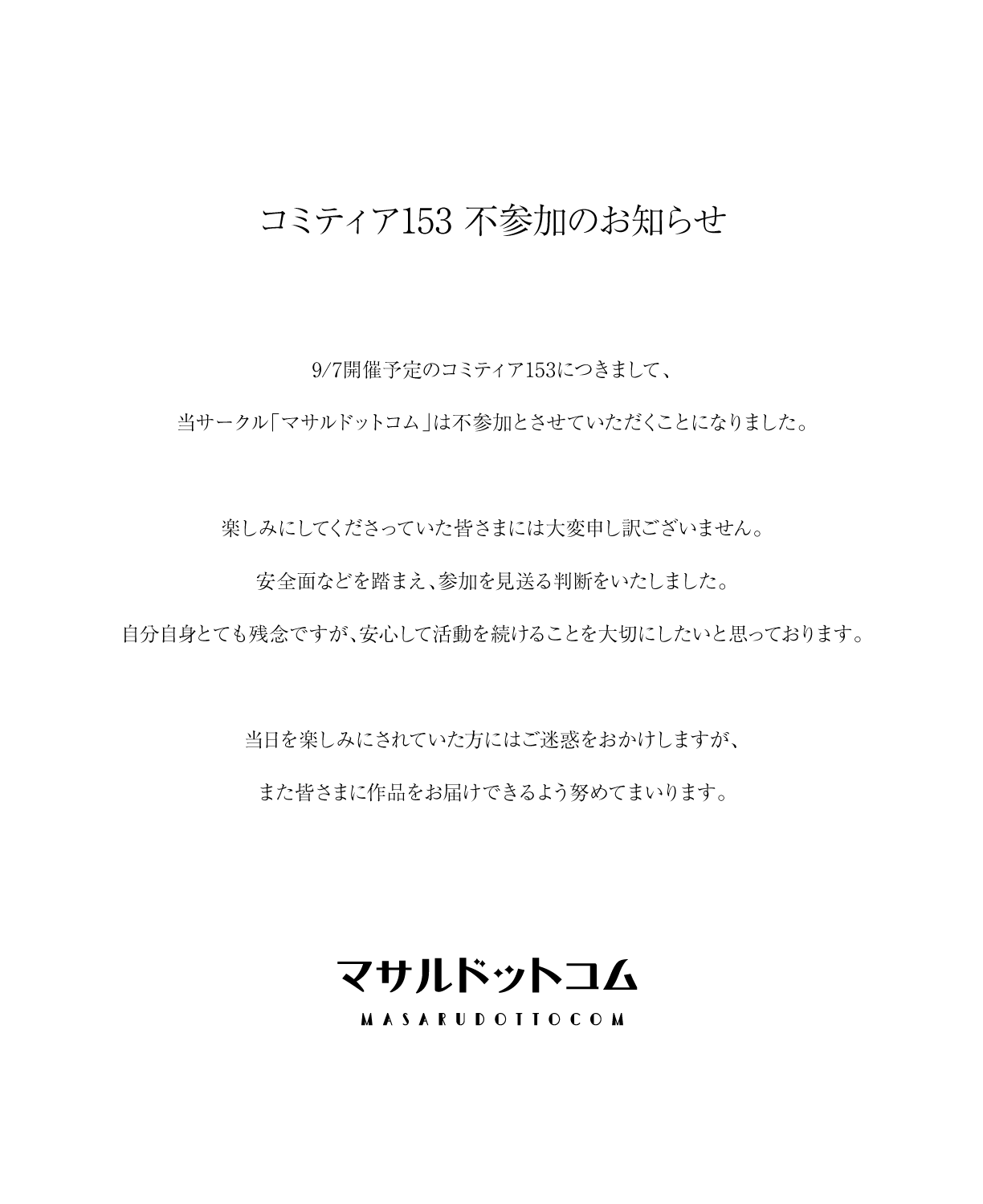 ▼ 過去に参加したイベントの特設ページ 2025/9/7 コミティア153 2025/2/16 コミティア151 2024/12/30 コミックマーケット105 2024/8/12 コミックマーケット104 2024/5/26 コミティア148 2024/2/25 コミティア147 2023/12/3 コミティア146 2023/5/7 博麗神社例大祭20 2019/11/24 コミティア130 2019/8/11 コミックマーケット96 2019/5/12 コミティア128 2019/2/17 コミティア127 2018/5/5 杜の奇跡27 2018/5/5 コミティア124 2016/10/16 秋季例大祭3 2016/10/9 東方紅楼夢12 2016/8/13 コミックマーケット90 2016/5/22 東方杜郷想4 2016/5/8 博麗神社例大祭13 2016/5/5 コミティア116 2016/1/31 コミティア115 2015/12/30 コミックマーケット89 2015/11/1 東方紅楼夢11 2015/10/18 秋季例大祭2 2015/8/14 コミックマーケット88 2015/5/24 杜の奇跡24 2015/5/10 博麗神社例大祭12 2015/5/5 コミティア112 2014/12/29 コミックマーケット87 2014/11/23.24 コミティア111&秋季例大祭1 2014/10/12 東方紅楼夢10 2014/8/31 コミティア110 2014/5/11 博麗神社例大祭11 |